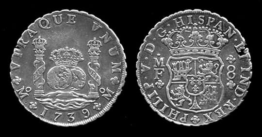 One of the most famous phrases in pirate lore, the term “pieces of eight” is the phrase uttered by Long John Silver’s parrot, the first real proof that Silver is really a pirate. But the coin is not only piratical, it is the basis of the American dollar, the Canadian dollar, the Japanese yen and the Chinese yuan. It was the first “world currency” starting in the late 18th century. It’s definitely the most famous Spanish coin.