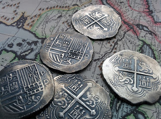 Money in Spain was based on a system of reales (pronounced re-al-es’). Spain was commonly using an 8-real coin of very high quality in 1497. In 1537 the Spanish escudo gold coin was introduced, which was worth 16 reales. The later Gold Doubloon was worth 32 reales or 2 escudos. It is this divisibility into 8 which caused the silver coins to be named "pieces of eight".