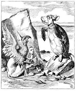 The taste of real turtle flesh is said to be a cross between crab and beef. Apparently this came close. It was wildly popular for nearly a century, and can still be found in some upscale restaurants. The image of the Mock Turtle can also be found in Alice in Wonderland, where Lewis Carroll described an animal with the body of a turtle, but the head and feet of a calf. (Calf’s feet were sometimes used to make mock turtle soup instead of the head.)