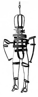 Gibbets were designed for maximum horror. The point of the iron container was to hold the body in the shape of a human. Gibbets were hung out of reach of passersby, and suspended by chains designed to move and rattle in the wind. When they were first put up, crowds would gather in a kind of macabre holiday.