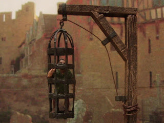 In London in the 1600’s the fate of executed pirates was a matter of great ceremony. A veritable parade, led by on official carrying a silver oar – symbol of the British Admiralty’s authority to rule the seas – led the condemned pirate to Execution Dock, located on the Thames River. The Admiralty’s authority began at the edge of the sea, and so the place of execution was located in the mud flats of the Thames, below the high tide line.