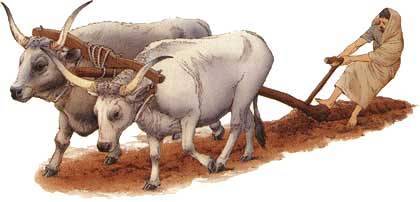 Romolo, con il capo velato, traccia il mundus con l’aratro (illustrazione di P. Brocato)