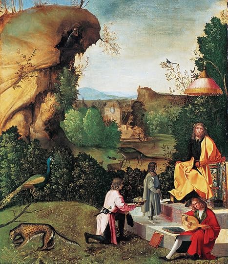 Ricordiamo poi, come, secondo la concezione pitagorica, la Storia è ciclica e ciò che è stato sarà di nuovo: per cui il quadro non è solo una celebrazione delle Origini, in confronto al caos del Presente, di una Repubblica di Venezia in crisi politica, economica e sociale, ma anche un invito alla speranza. Giorgione offre una splendida rappresentazione dell’Esilio di Saturno. Privo di ogni oggetto regale, simbolo di status, di prestigio e di potere, Saturno si ritrova immerso nella natura, in mezzo agli animali esotici, metafora di un luogo cerebrale in cui si coltiva l’arte della memoria, della conoscenza dell’anima e delle sue radici istintuali.