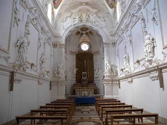 E’ un brano di quello splendido romanzo, ultimamente però sempre meno letto, che è il Gattopardo di Tomasi di Lampedusa, in cui si cita la Casa Professa, di cui ho raccontato la storia la scorsa settimana la storia. Oggi è il turno di una visita virtuale a questa meravigliosa chiesa. La facciata rivolta a nord nella parte centrale è caratterizzata da un doppio ordine di lesene binate sovrapposte di colore scuro che esaltano il senso di profondità creato dal rilievo prospettico. Semplici lesene delimitano nel primo ordine gli ingressi minori sormontati da nicchie. I due ordini sono raccordati da volute con riccioli verso il basso. Chiude il frontone costituito da timpano ad archi spezzati sovrapposti e fregio centrale con cristogramma retto da volute in rilievo.