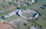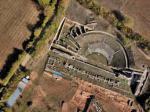media cavea, si stima che la capienza complessiva fosse di 2.000 persone. La parte inferiore, articolata in 18 file cui si accedeva da 3 scale radiali, è stata oggi parzialmente scoperta ed è in grado di ospitare circa 400 persone. Frontale alla cavea, e separata da essa da un canale in cui scorreva il sipario, sono i resti della scena di quasi 60 metri di lunghezza e strutturata su due diversi segmenti. Abbandonato dopo il IV secolo d.c. venne successivamente utilizzato come necropoli.