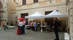 a) Stand Caritas, con presenza di operatori e materiale divulgativo in distribuzione;