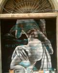 sia da tanti, tanti romani… Il problema è che in teoria, per una vecchia delibera, mi pare dei tempi di Veltroni o di Rutelli, legata alla tutela del Centro Storico come patrimonio dell’Unesco, quando insomma la street art era una cosa che accadeva a New York o a Londra, mica a casa nostra, l’opera di Marco sarebbe illegale…