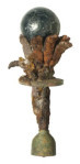 Infine Lo scettro invece a due globi in vetro verde dorato è stato riconosciuto come il simbolo della iurisdictio, poiché appare nel dittico di Areobindo del 506 d.C., impugnato dall’Arcangelo Michele, rappresentante della giustizia nel giudizio universale