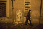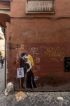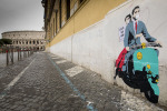 Per questo, per ciascuna di queste opere, sono state scelte precise strade o aree della città per l’affissione. Peck e la Hepburn vicino al Colosseo, Mastroianni ed Ekberg in un vicolo in prossimità di Fontana di Trevi; e ancora, Fellini alle porte di Cinecittà, Totti a Porta Metronia, Pasolini nelle strade del Pigneto dove girò “Accattone”, Sofia Loren nei vicoli di Trastevere dove interpretò “La ciociara”, Papa Francesco a Borgo Pio, in prossimità del Vaticano.