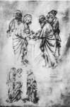 Intanto, nel 1424, Pisanello che stava completando gli affreschi di Gentile al Palazzo Ducale di Venezia, è incaricato di affrescare il Castello di Pavia con scene di caccia, in previsione dell’arrivo di Giovanni VIII di Bisanzio. Pisanello accetta e all’improvviso, si ritrova circondato da decine di funzionari bizantini, rimanendo affascinato dai loro vestiti, usi e costumi. Pisanello,che è un disegnatore compulsivo, rappresenta di tutto, da opere romane antiche a dipinti di Giotto e Altichiero e opere all’epoca d’avanguardia come quello l’Angelico, Fra Filippo Lippi, Donatello, Luca della Robbia, li comincia a ritrarre; non lo avesse mai fatto ! In men che non si dica, si ritrova a svolgere il ruolo di pittore ufficiale dei Paleologhi.