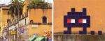 Invader è un famoso street artist che incolla personaggi da e ispirati al videogioco arcade Space Invaders del 1978, formati da piccoli piastrelle colorate quadrate disposte a mosaico per formare sul muro un personaggio del gioco. Ha prodotto opere di questo genere in tutto il mondo a cui ha dato il nome di “Invasione”, con libri e mappe su dove trovare ogni opera.
