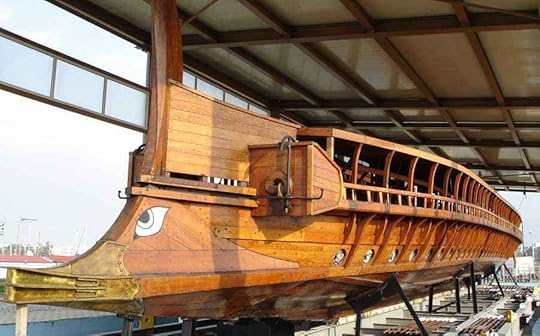 parte accorse a sbarrare il passo alle divisioni che calavano a precipizio dall’Olimpico, un nugolo di cavalieri e di lanciatori di giavellotto. Gli altri infine balzarono sulle navi e intanto si schieravano a protezione della riva: appena gli equipaggi e le navi furono in assetto, alzarono le ancore e via contro il nemico: filavano con settantacinque triremi verso i Siracusani che rispondevano con un’ottantina di unità di linea.