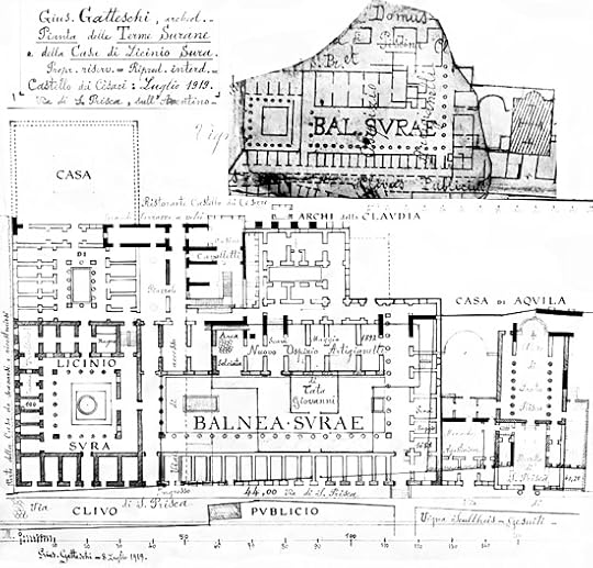 Nel 1934-1935 alcuni scavi realizzati sotto la chiesa di S. Prisca sull’Aventino portarono alla scoperta di un complesso piuttosto ampio di abitazioni risalenti al I secolo d.C.. Inizialmente questi resti furono ritenuti l’abitazione privata del futuro Imperatore Traiano (domus privata Traiani), identificata invece successivamente nelle strutture rinvenute poco distante nel sottosuolo della Piazza del Tempio di Diana. Alla luce di studi più recenti si ritiene invece che si tratti della casa e delle Terme di Lucio Licinio Sura, politico e generale molto influente sotto Traiano, di cui era amico e consigliere. Ciò sarebbe anche confermato dalla Forma Urbis Severiana, che in quest’area, adiacente al Tempio di Diana, indica la presenza delle Terme Surane