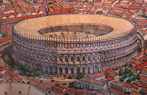 Per le note vicende che portarono all’anno dei quattro imperatori, i lavori procedettere lentamente per una decina d’anni, per concludersi ai tempi di Vespasiano, che ne fu talmente soddisfatto da utilizzare probabilmente i suoi architetti per la costruzione del Colosseo.