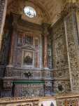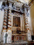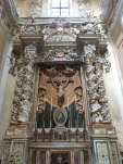 Tutt’intorno un profluvio di pietre rare, agate, ametiste, lapislazzuli, topazi, granatine, eliotropie e fregi dorati. Degno di nota lo splendido Crocifisso ligneo seicentesco, opera di Alessandro Algardi posto su un reliquario in lapislazzuli e rame dorato chiuso da una vetrata a disegni geometrici. Ai lati le statue dell’Addolorata e San Giovanni Evangelista, commissionati a Genova da padre G.ppe Gambacorta alla famosa bottega degli Orsolino, stucchi e affreschi di Vincenzo Riolo.