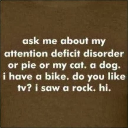 It took me an inordinate amount of time this week to figure out something to write about. Why? Mostly because every time I sat down to type my mind would be whisked away in a million different directions.I have ADHD. No, I'm not one of those people who says, "I'm so easily distracted, I must have ADHD!"