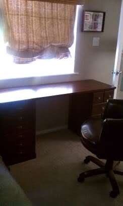 Mu hubby and I have had one huge problem since we got married…figuring out the best way to arrange the den/office. We've lived in three houses and only now, after almost thirteen years of marriage, did we finally get it right. We bought the perfect desk – this from Pottery Barn: