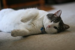 That's Jack, one of my cats. Jack, the little sweetheart, threw up on my laptop keyboard. Yep, that's what I said. Threw. Up. In case you're wondering what that has to do with the excerpt, his vomit shorted out my keyboard. So now the laptop, the one with the digital copy of LOCKED AND LOADED (and all of my other Word documents), is off for three weeks (three!!!) being repaired.