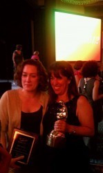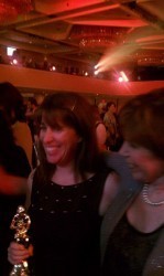 The highlight? My dear friend and roomie, Jill Shalvis, won the RITA for single contemporary romance. Yay for Jill! This was much deserved. She is an incredible writer. Here's a photo (apologies for the phone camera quality) of her with the RITA and fellow awesome author Robyn Carr (left) and Jill with her editor, Alex Logan (right):