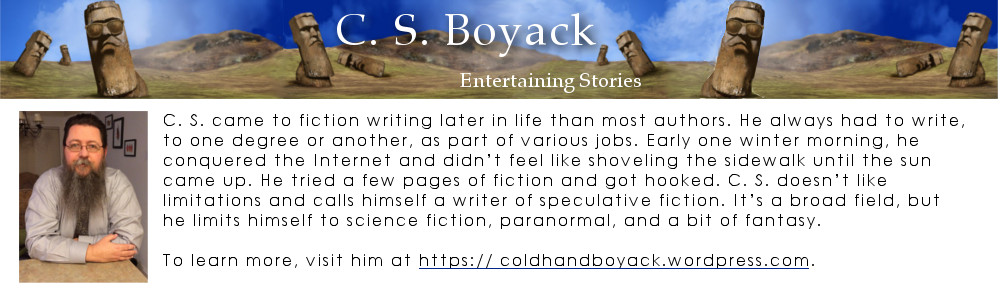 [image error]I’m on the verge of being an empty nester, and I like to write fiction. This blog is to share ideas with readers and writers. I have a decent body of work on Amazon, and I hope you’ll check some of them out. They are all speculative fiction, but seem to stay closest to science fiction, paranormal, and fantasy.