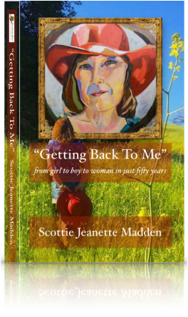 Zuzubean Press is excited to announce the Nov. 10, 2015 release of "Getting Back to Me” from girl to boy to woman in just fifty years. The real-time account of the coming out and M to F transition of an alpha-dog.Los Angeles, CA (PRWEB) November 05, 2015In the wake of the Caitlyn Jenner’s privileged transition in the public eye comes the real world transition of a down-to-earth trans woman in real-time. Scottie Madden uses her journal entries to shed fresh light on the trans experience as she leaves behind fear and “white male privilege” to embrace truth, grace and womanhood. Her gut-wrenching journey of love, acceptance and honesty becomes the ultimate survival show.Scottie didn’t make it easy on herself. Like many late-stage trans women, Scottie had made one helluva guy; succeeding as husband of 26 years, the only son, the big brother to three sisters and the legendary adventurer uncle to their children. Everything in her life screamed “alpha male,” but no one could guess that Scottie, a top survival showrunner for Discovery Channel and the History Channel, known for leading übermale productions into the world’s most dangerous and remote locations was losing a lifelong battle for her soul. It takes true love from her wife of 26 years for Scottie to shake off fifty years of expectations from her family, society and herself. But first she had to face the denial that she had embraced to shield herself from the heartache of a life that would go on unlived. Scottie shines her laser sharp instincts for the truth (finally) on herself, and reveals the inner workings of the human soul as it strives to reconcile fear, love, happiness and the truth of who we all are. Her ability to articulate the deepest murmurs of the heart translates to anyone who has ever tried to deal with the insidious malady that goes by the name of denial. Formidable, fearless, lively, and, above all, charmingly fun, Scottie brings you along with her to the outer edges of the showdown with dangerous private truths. “Getting Back to Me” shows that love does conquer all. Scottie’s unshakable faith in love and her family, friends and community, and her belief in them to be the best that they can be, pays off in inspiring ways.~ Sally Park Rubin, author of” The Overfunctioning Woman's Handbook,” says, “Riveting! Tragic hero turns triumphant heroine. If you believe love conquers all, this book will inspire you to go for more of THAT. Formidable, fearless, lively, and, above all, charmingly fun, Scottie, a Hollywood survival show showrunner, brings you safely along with her to the outer edges of anyone's ability to confront dangerous private truths...takes you on a wild ride overlooking the breathtaking canyons of the soul of a woman."