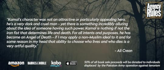 As I said, there is a very complex story within the pages of Agency Rules and it is not just Kamal's gathering of evidence. The Ministry squabbles throughout the novel while trying to create figureheads, alliances and downfalls within their own political hierarchy. The Pakistani Military is trying to keep ahead of the Jihadis and sift through paramilitary interference, and stay out of politics and civil affairs. And the mujahideen are pulling all their alliances together to fight against the corruption of the West in their struggle for Allah. No one is who they seem and nothing is ever as it appears.