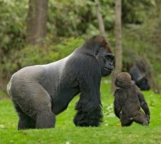 Then, knowing his baby was safe, the father gorilla returned to the task in hand.