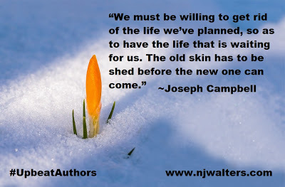 RENEWAL “We must be willing to get rid of the life we’ve planned, so as to have the life that is waiting for us. The old skin has to be shed before the new one can come.” —Joseph Campbell #UpbeatAuthors