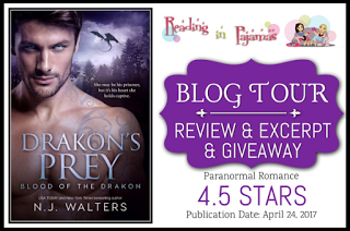 "Author N.J. Walters gives her readers a new look at dragons in her Blood of the Drakon's series and it is filled with everything paranormal and romance readers want and more. DRAKON'S PREY has sexy dragon shifters (I will leave the explanation of Dragon vs. Drakon to the book), a heroine who is gutsy and determined, sweet and steamy romance, and love (though the men would probably deny it) that includes family, what more could you ask for? Maybe a couple more books by this author." ~Annetta Sweetko