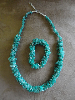 Then I hit the jewelry section. I freely admit that 95% of the time I find nothing I like, but that 5% when I do makes it all worthwhile. I found the necklace first. It's incredibly intricate and a chunky piece. Not sure what the green chips are, maybe adventurine.