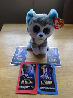 Just because I’m in the mood to give away something, I’m having a contest over on my Author Page and giving away a cute stuffed wolf and some magnets and stickers.