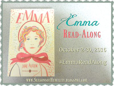 Today we're going to discuss chapters 1-14 (Volume I). If you came prepared, go ahead and share your thoughts in the comments section or in your own post! (Feel free to use the image above, linking back to the Emma read-along tag .) If you still have to catch up on some reading, you're welcome to check in later this week or whenever you're ready. :)