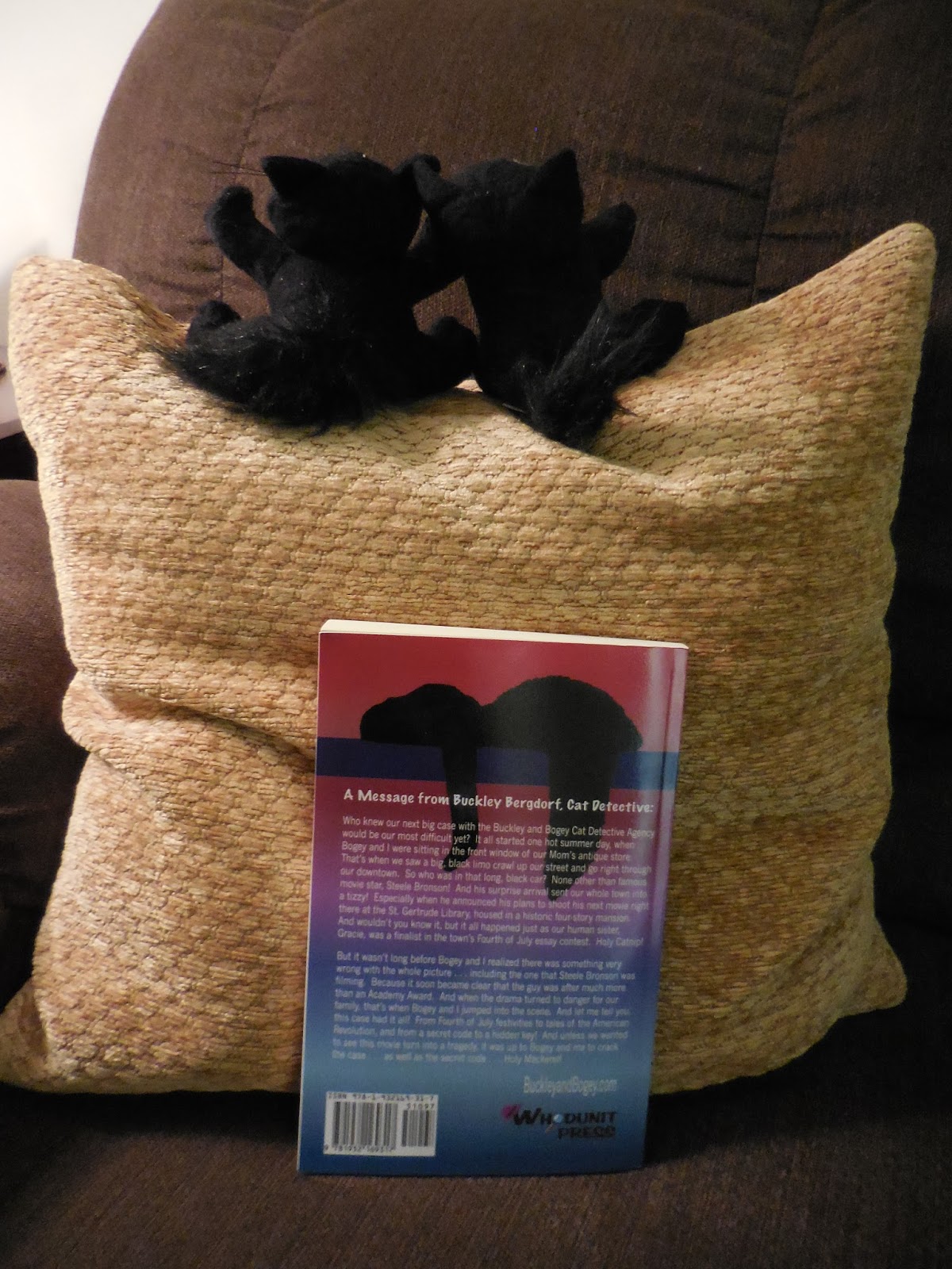Buckley: Hello again, our wonderful friend, Amber! Holy Catnip! Thanks for having us here today. Hugs and wet nose kisses from Bogey and me. And yes, the Buckley and Bogey Cat Detective Agency has been very busy since we last spoke. Whew. We’ve had a couple of cases that turned out to be real doozies!