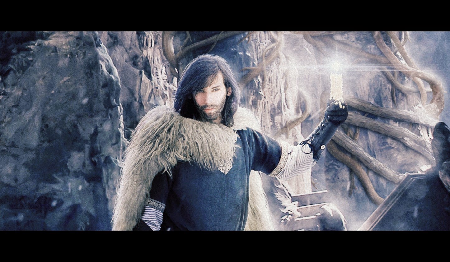 I recall when Anne Elisabeth had readers vote for their favorite of a couple different designs for this book's cover, and seeing the full wrap-around of this version was quite creepy and intense! But it fits with the tagline of this book so very well... That candle truly shines in the dark indigo of that cave. Not just the candle, but also the warm, white cape draped over the shoulders of the hero like a gift, the determined look on his face in the glow of the light he carries, and the title and author name - all stand out brightly against the bleakness of the background. The scene is troubling with the twisted roots/vines that strangle and the crumbly rock all around the hero, but his stance - in light of the hope he holds - is strong and ready. A very eye-catching and engaging cover for this fantasy series!