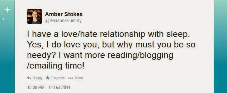 It's not that I can't fall asleep, but simply that I too often choose not to go to bed at a decent hour. I do like sleep (very much!)... I'd just like more hours in the day so that I could do other things, too! I suppose maybe I could prioritize my time better, but that's beside the point. ;)