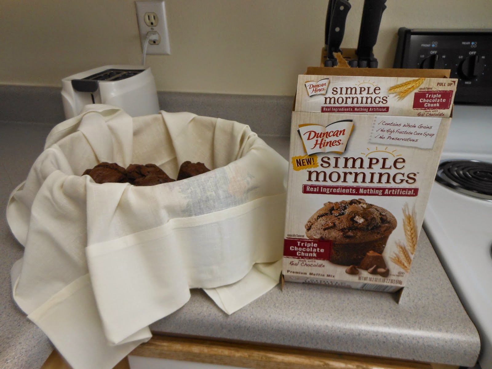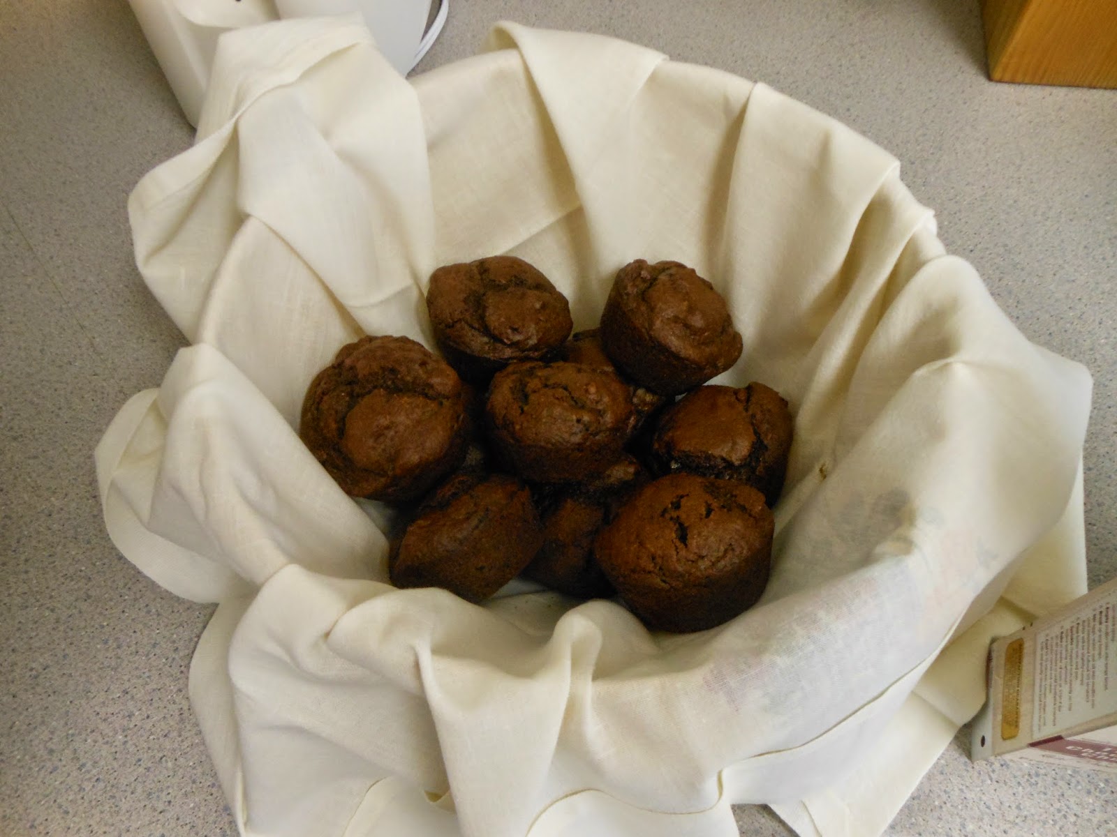 I sprayed the tin with cooking spray instead of using cupcake liners, and they came out perfectly! And the triple-chocolate goodness, fresh from the oven? Oh, yeah, I'm a happy girl!