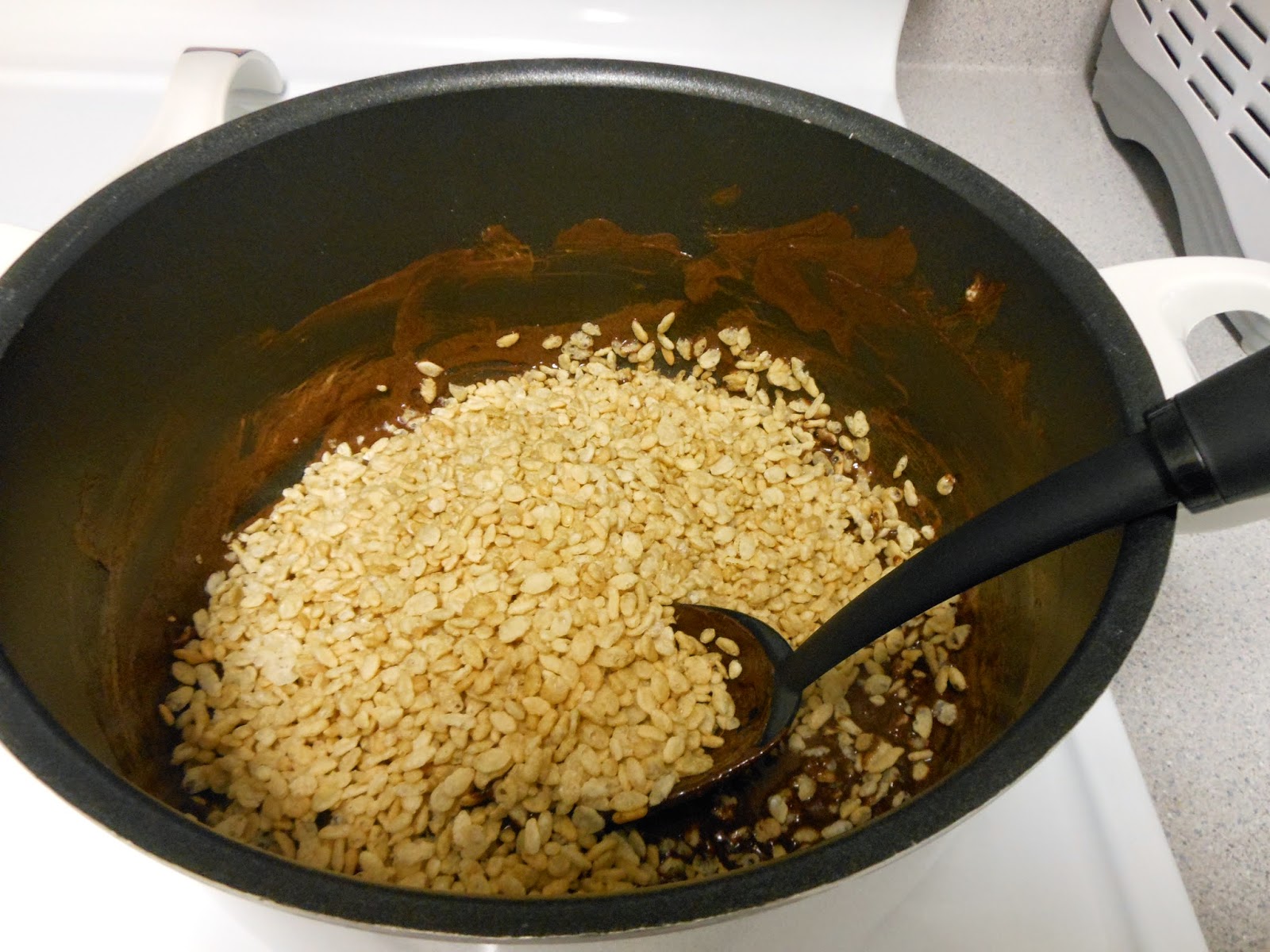 Crisp Rice Cereal from Trader Joe's and chocolate chips and marshmallows from TargetInstructions: