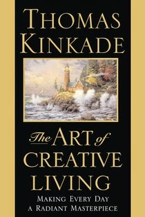 My living/dining room is my "Thomas Kinkade Room." Thomas Kinkade painting, Thomas Kinkade tapestry, my grandparents' Thomas Kinkade clock, a Thomas Kinkade lighted church, and a couple of Thomas Kinkade books. On a whim, I decided to pick up one of them while I was eating breakfast. (Breakfast is awfully quiet when you're on your own, getting ready for work at seven in the morning.)