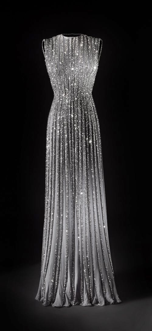 Pleated Chiffon Gown with BeadingSource: Fashion JotAmber: OK, that is just plain awesome. I could picture your heroine, Elsa, wearing something like this - perhaps with additional space gear!