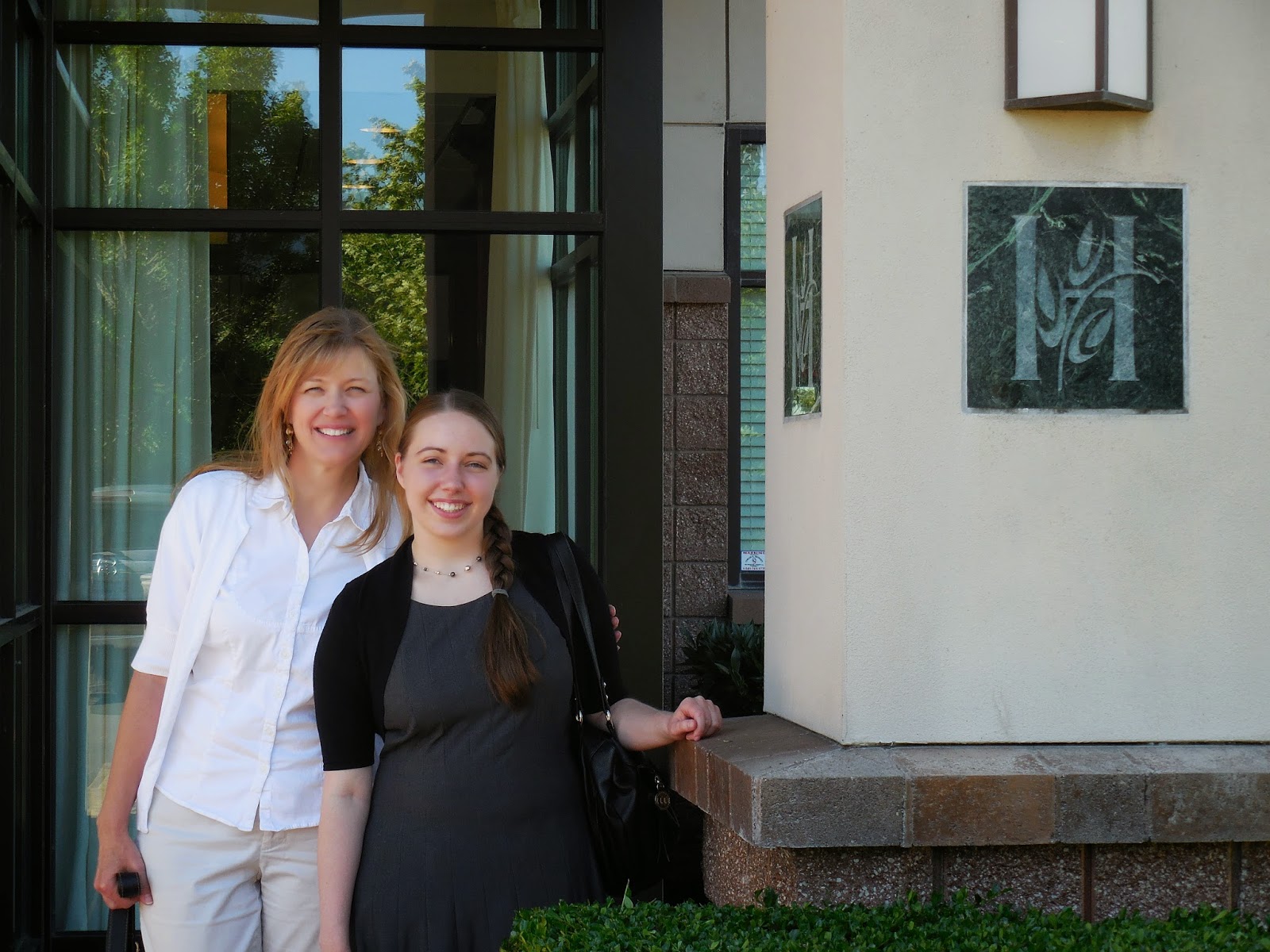 My sweet Mom and I at the entranceMy mom and I were very kindly given the grand tour this past Monday, so we had the opportunity to see the lunch room (with such a beautiful view!), the marketing team's section (everyone was so incredibly nice and fun, and the area is open, fostering an atmosphere of cooperation and camaraderie), the warehouse (oh, you guys! It goes on forever and smells of books!), and the various other departments (yes, the editorial section is rather large!). The property and the building are simply stunning, and everyone I met made me feel welcome and at home. Interestingly enough, Harvest House's new blog is titled "Welcome Home" - and that's exactly the message I got when I arrived there. I really feel like Harvest House and its little corner of Oregon could be my new home.