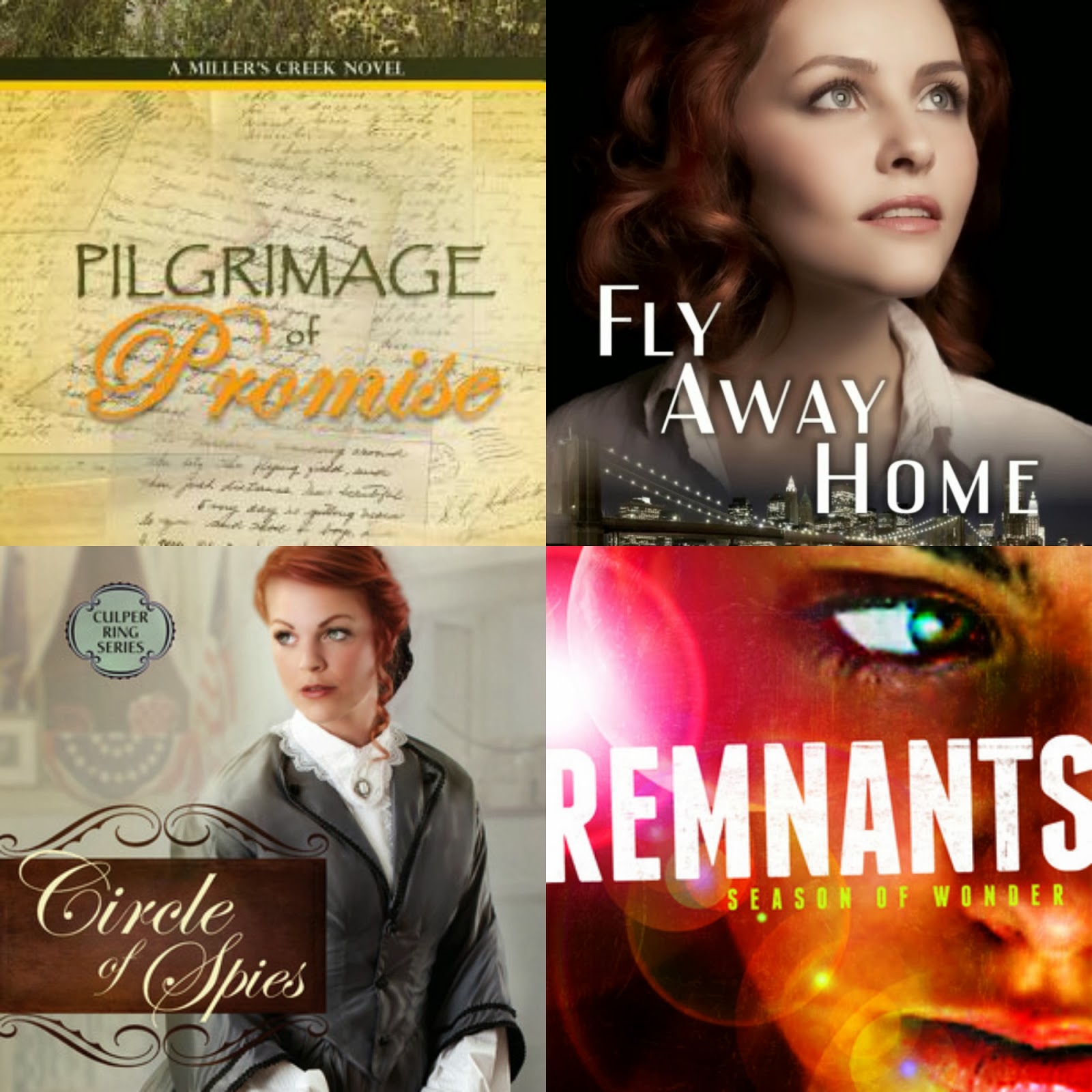 The books are: Pilgrimage of Promise by Cathy Bryant (from author), Fly Away Home by Rachel Heffington (from author), Circle of Spies by Roseanna M. White (NetGalley), and Remnants by Lisa T. Bergren (NetGalley).