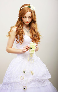 Several months ago, Lena was working on the cover for Forget Me Not, the first book in the series and Bleeding Heart 's prequel. I had already started another secret Pinterest board for Morning Glory's cover, including some Oregon sunrise/sunset pictures, some morning glories, and another top-secret element to be shared later on when the paperback cover is completed. ;) I also found one red-haired model I liked. I think perhaps I had pinned some of those pics while we were brainstorming the cover for Forget Me Not or something... Either way, Lena jumped straight into this project before we had even finalized the cover for Forget Me Not! She pinned a few model pics, once again (like with the model for Forget Me Not) zeroing in on a model that I wasn't sure felt quite right for the part. Here's the pic: