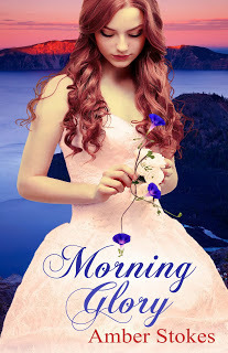 What I Love: The model's expression, perhaps serious, but in a confident, waiting-expectantly-for-something-to-happen way. Her hair, which is absolutely gorgeous - lively, rich, and curled like morning glory vines. Her posture, which is humble with her head bowed a bit, but also tall and elegant. The morning glories she's holding, which are also tall and reaching up to the sky (not to mention a glorious, royal shade). The deep, dark purple-y blues of the background (Crater Lake), and the vivid reds and pinks of the morning sky just touching the cliffs on the other side of the lake - all hinting at dark things that are overshadowed by a bright, coming dawn. The hillsides themselves once again highlighting the emotional peaks and depths my characters face. The title font that's flowy like water and curved like the tendrils of the heroine's hair and the vine. And the whole concept, including the way the depths and heights, the dark and light, are all contrasted in a delightful display of color.