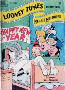 Comic book fans, this is as close as I can currently get to a New Year’s comic book without digging through thousands of titles contained in many white cardboard boxes. And when we can travel way back to 1950 and see various Looney Tunes characters wishing Bugs Bunny a Happy New Year, I think that’s pretty darn cool! When I was flipping through back issue boxes at Kenmore Komics one day and spotted this for just $5, I knew I had to add it to my collection, and this is the perfect time to show it off, in the last Cool Comics episode of 2021. It takes many hands to produce these longer anthology titles, and while there’s uncertainty about all the creator credits for this issue, some of the names listed at the Grand Comics Database include Dan Gormley, Fred Abranz, Jim Pabian, Roger Armstrong, and Vivie Risto. To get a better look at the different tales included in this issue and which known creator worked on them, please click GCD. The cover price of Looney Tunes and Merrie Melodies Comics #100 is 10¢, while the current value is $145.