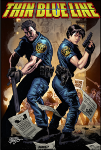 Among comic book readers, Mike Baron is best known for writing Star Wars, The Flash, Nexus, and The Punisher for Marvel Comics, but this graphic novel may turn out to be one of the only comics he’s ever written to not be available at comic book shops, primarily because every publisher Mike reached out to said that making street cops the hero didn’t align with their business model.