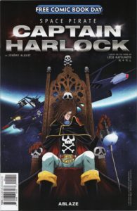 No one likes pirates, do they? They plunder, destroy, capture, kill, and make you walk the plank! I don’t like pirates of the high seas, and I don’t like pirates that sneak through the cold recesses of space. However, I’ve been a fan of the Pirates that sail the three rivers in Pittsburgh, but that’s the only exception I’ll make. And yet…maybe I did like Space Pirate Captain Harlock just a bit. This Free Comic Book Day (FCBD) issue did get me a bit interested in the greater story going on here, but the odds are I’ll never read another of these comics again…unless it crops up once again as an FCBD offering. And if that’s the case, I’ll welcome back Captain Harlock with a friendly “rrrr matey.” This FCBD issue is presented by Leiji Matsumoto (story) Jérôme Alquié (story, art, cover artist), Dezi Sienty (letters), Rodolfo Muraguchi (designer), and Kevin Ketner (editor). The cover price of Space Pirate Captain Harlock is free, while the current value is $1.