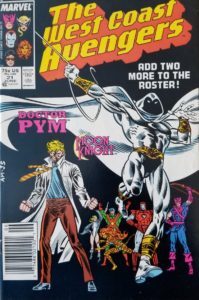 I’ve never been a big fan of West Coast Avengers…or even Avengers West Coast…but when Moon Knight is on the cover of an old issue tucked away in a quarter box, there’s no doubt that it’s coming home with me. As the cover tells us, this issue sees the West Coast Avengers add a couple heroes to their roster: Doctor Pym and Moon Knight! And with Moon Knight’s upcoming Disney+ streaming series, I’m glad I grabbed this before it disappears from shops across the globe! A couple of other personal reasons I enjoy about the addition of this to my collection is that I wasn’t actively buying comics in 1987 (and I love exploring comics periods I missed out on), and 1987 was the year I married my über-cool wife. West Coast Avengers creators consist of Steve Englehart (writer), Al Milgrom (layouts), Joe Sinnott (finishes), Tom Orzechowski (letters), Paul Becton (colors), Mark Gruenwald (editor), and Jim Shooter (chief). The cover price of West Coast Avengers #21 is 75¢, while the current value is $4. The Key Collector Comics value is $3.