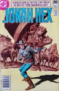 My knowledge of Jonah Hex is sorely lagging, as my collection contains just 11 issues (this includes both the titles Jonah Hex and Hex), and, so far, I’ve read just two of them. I believe Jonah has popped up in other DC comics I’ve read over the years, but I certainly need to experience more, because I like the stories. And believe me, I’m always watchful for this unusual western hero whenever I’m searching through discount boxes. The super Seventies creators that brought us this exciting issue include Michael Fleisher (writer), Luis Dominguez (artist), Ben Oda (letterer), Bob LeRose (colorist), and Ross Andru (editor). The cover price of Jonah Hex #31 is 40¢, while the current values are $22 on CBR and $16 on ZKC.