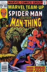 The Seventies Marvel comics were often misleading when it came to the actual story title. And this issue of Marvel Team-Up #68 is a perfect example. If you look at the bottom right corner of the cover, you’d think the title would be DARK SWAMP, DEEP FEAR! But when we flip to the first page, we see this story is named THE MEASURE OF A MAN! Oh well, just a fun little observation from my favorite period of comics. Besides getting a great adventure with Spider-Man and Man-Thing, this issue also sees the first appearance of D’Spayre…who proves to be a formidable foe. If you love Spidey and burn at the touch of Man-Thing, I strongly suggest adding this one to your collection if it’s not already there. Marvel Team-Up #68 has a couple creator names quite familiar to many comic book fans: Chris Claremont (script) and John Byrne (pencils). Others who contributed to this fantastically fun Seventies story include Bob Wiacek (inks), Phil Rachelson (colors), and Bruce Patterson (letters). John Byrne (pencils) and Joe Rubenstein (inks) brought us the cover. The cover price of Marvel Team-Up #68 is 35¢, while the current values are $9 on CBR and $30 on ZKC. The Key Collector Comics value is $18.
