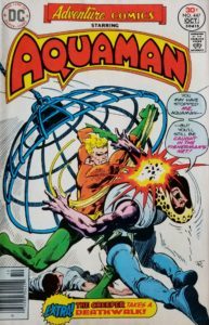 I’ve had this stored away for nearly a year in a longbox full of DC comics I bought for just a quarter each (I was able to purchase several issues of Adventure Comics during one fine day of browsing) and decided that I needed to give this one a read. The cover gives us action, intrigue, and an extra! That’s right, down at the bottom it says, “Extra! The Creeper takes a Deathwalk!” So how could I resist? All this excitement for just 25 cents! The Aquaman story is plotted by Paul Levitz, Martin Pasko wrote the script, Jim Aparo provided the art, color comes to us from Carl Gafford, and Joe Orlando did the editing. Creeper’s caper comes to us via Martin Pasko (writer), Ric Estrada & Joe Staton (artists), Carl Gafford (colorist), Ben Oda (letterer), and Joe Orlando (editor). And be sure to check out the back of your copy for a great ad featuring The Green Machine from MARX Toys! The cover price of Adventure Comics #447 is 30¢, while the current value is $10.